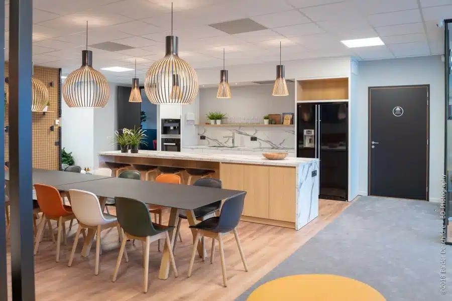 Du cloisonnement à l’ergonomie. IC Group à Aalter travaillait dans une structure obsolète avec de nombreux bureaux cloisonnés. Leur croissance continue et leur appréciation pour leurs fidèles employés ont placé un nouvel aménagement en haut de l’agenda. En 2018, ils ont définitivement échangé leurs espaces cloisonnés contre un environnement idéal. Pour y parvenir, il ne s’agissait pas d’un simple rafraîchissement, mais d’un changement en profondeur intégrant les dernières tendances en matière d’aménagement de bureaux.