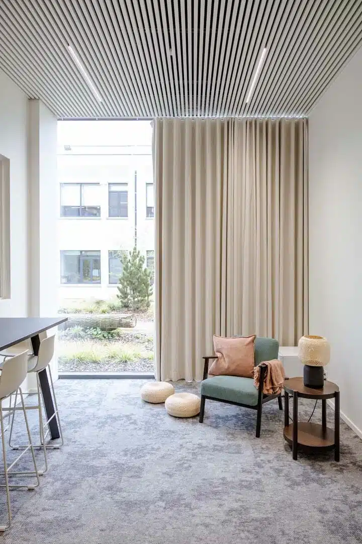 In een dynamische kantooromgeving is het belangrijk om ook ruimte te laten voor stilte. Refuge spaces zijn knusse, beschutte plekken waar je je even kan terugtrekken, om tot rust te komen.