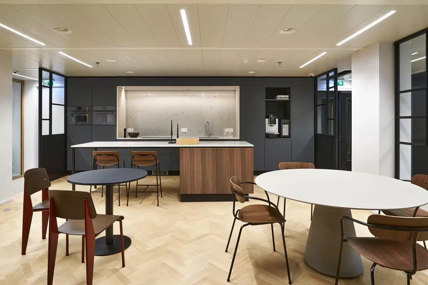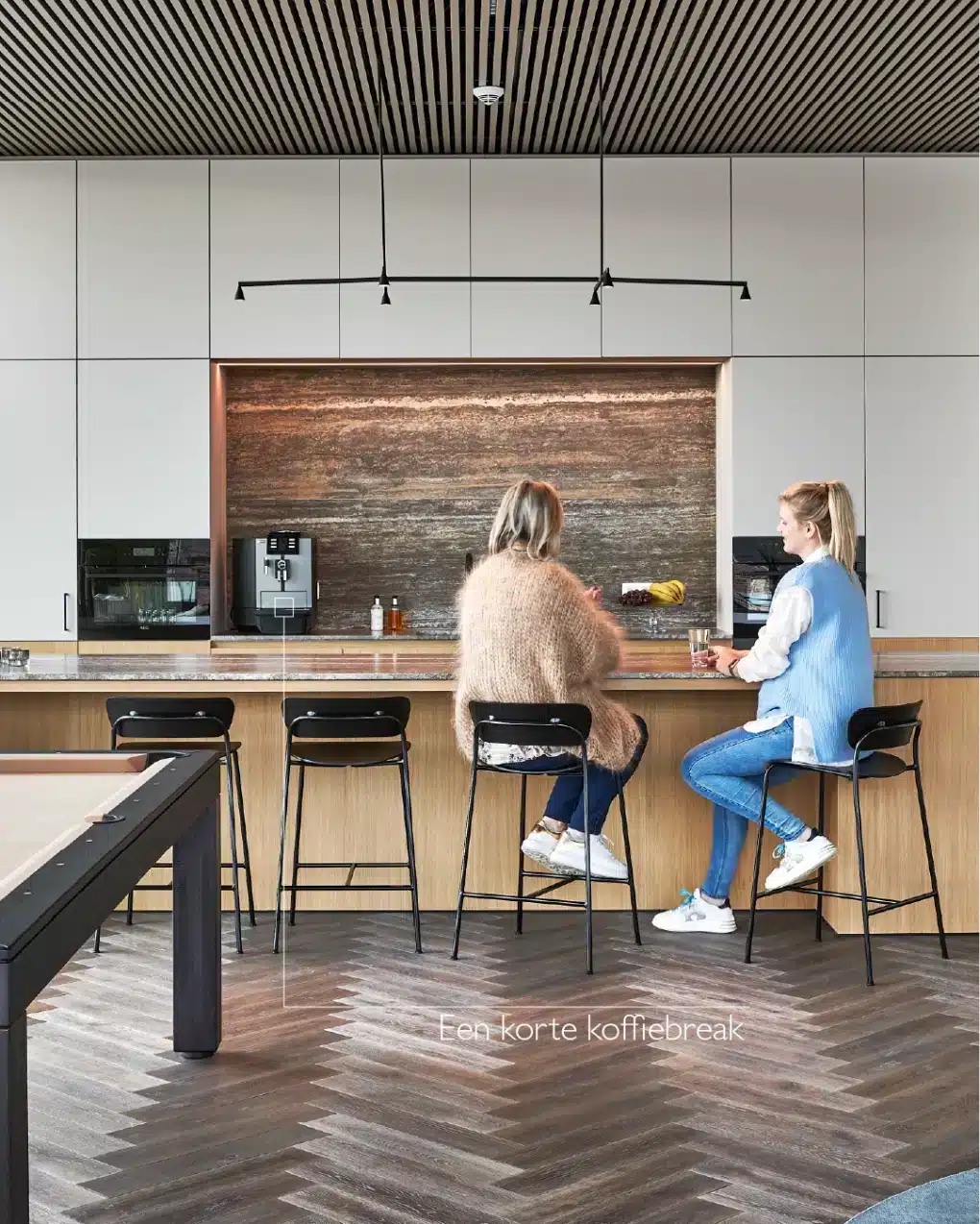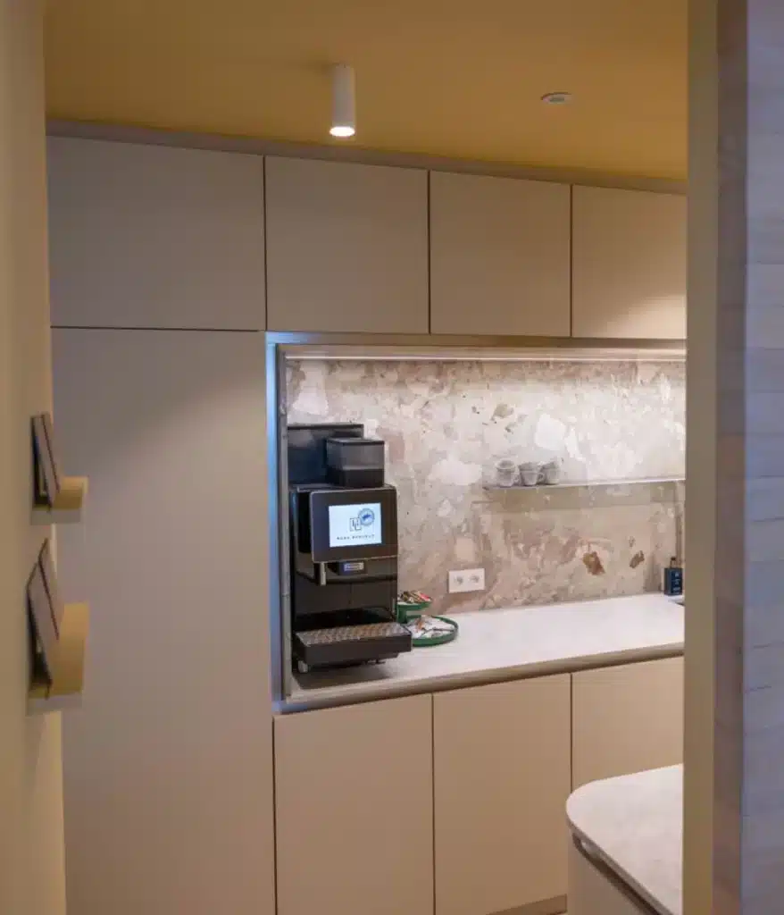 En het stopt niet bij interne teams. Een stijlvolle keuken of coffee corner is ook een geweldige plek om klanten informeel te ontvangen. Niet in een stijve vergaderzaal, maar in een omgeving waar het wat losser mag. Waar koffie en karakter samenkomen.