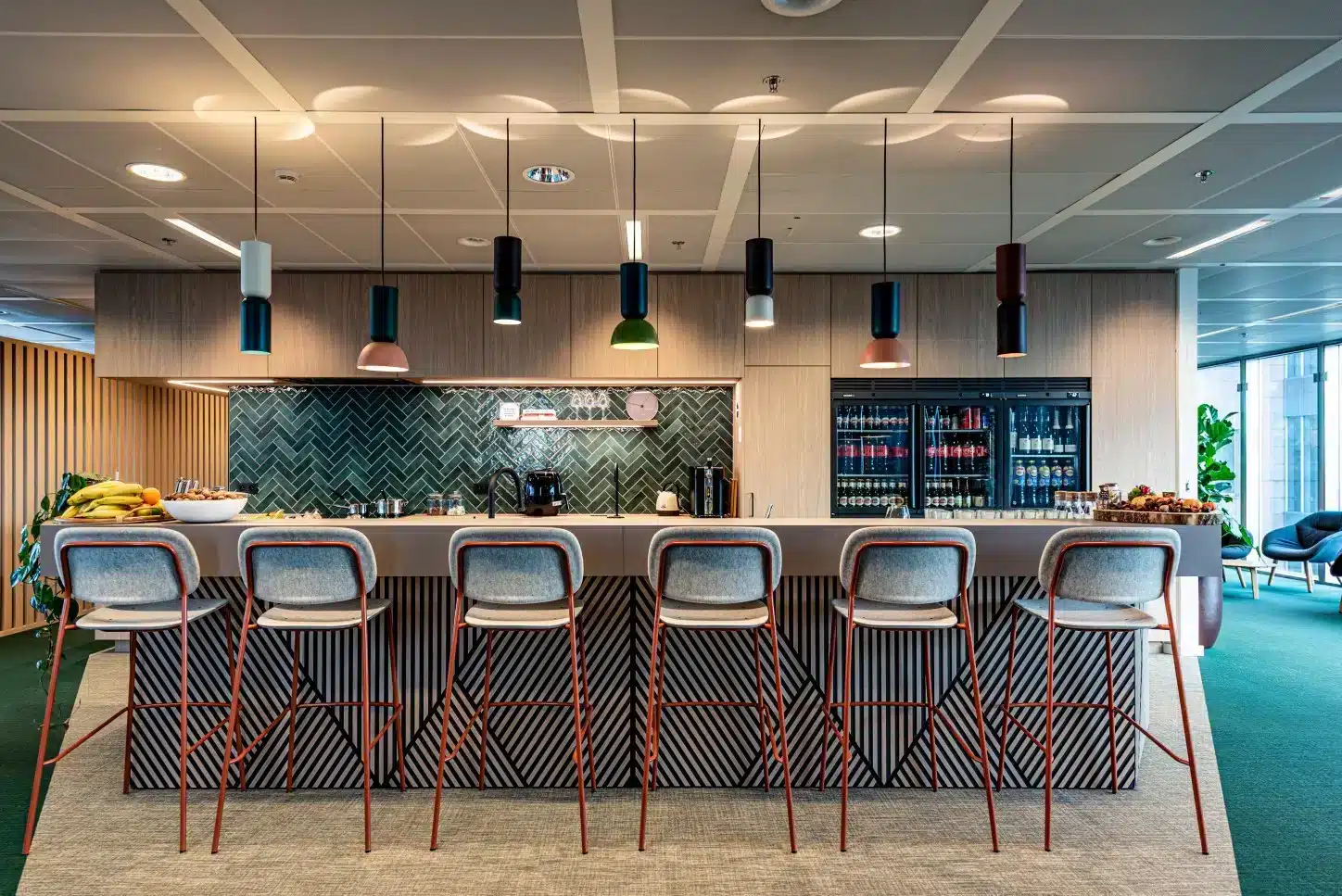 Keukens zijn niet puur functioneel. We zien ze als een essentieel onderdeel van je werkplekstrategie. Een ruimte die bijdraagt aan het welzijn van je team, de flow op de werkvloer én de uitstraling naar klanten. We kiezen voor duurzame materialen, slimme indelingen en meubels die uitnodigen tot ontmoeting. En we zorgen ervoor dat je keuken perfect past in het totaalconcept van je kantoor.