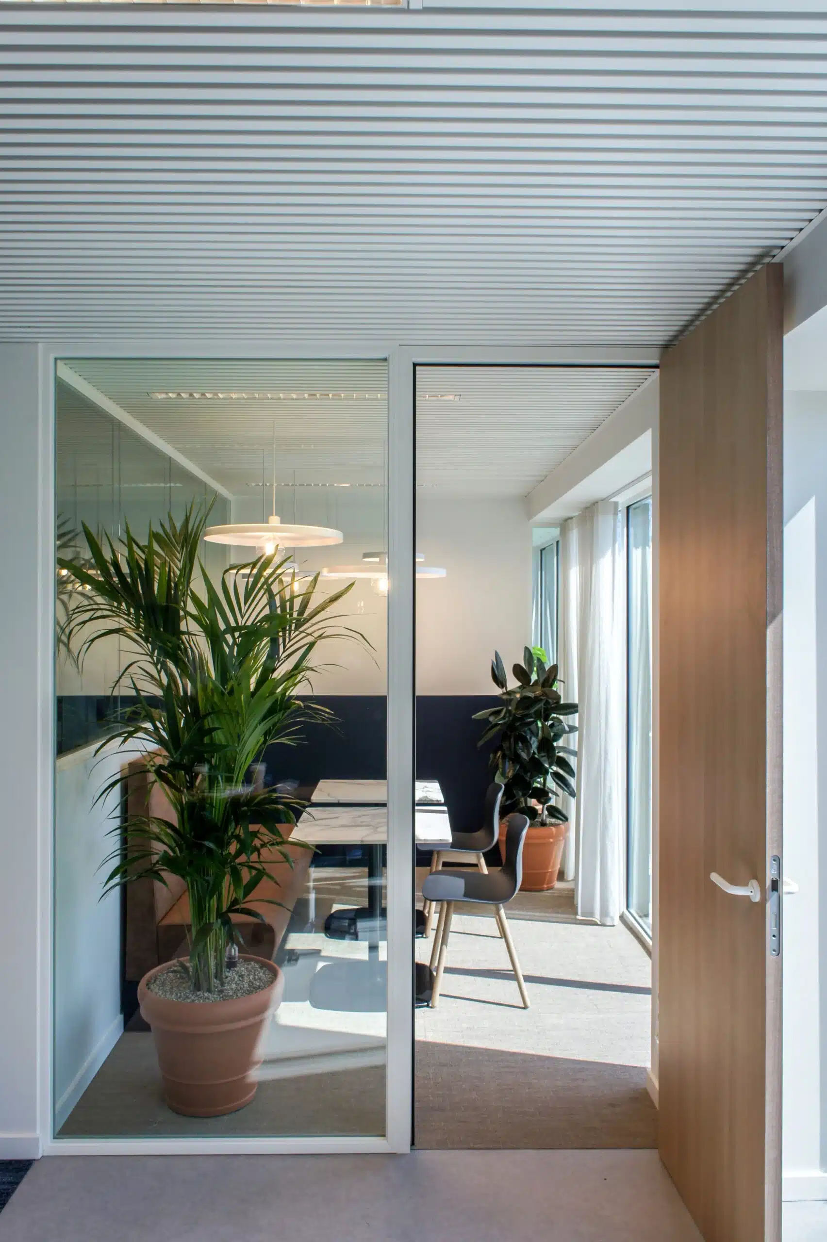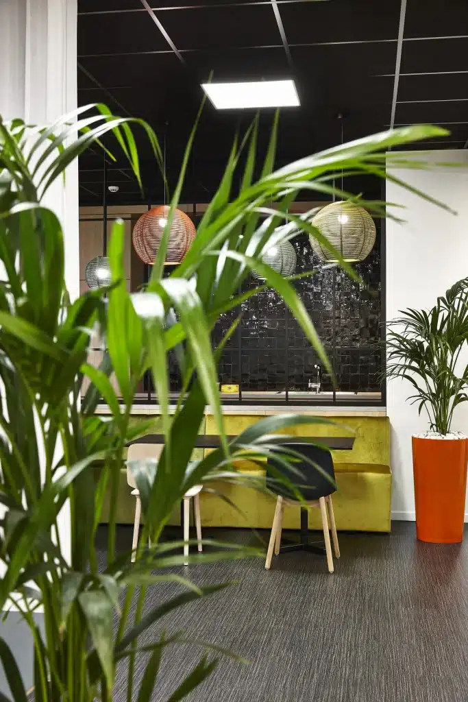 Planten absorberen het geluid en breken de weerkaatsing. Zo dragen ze bij tot een betere akoestiek en dempen het geluid van bijvoorbeeld collega’s in een telefoongesprek.