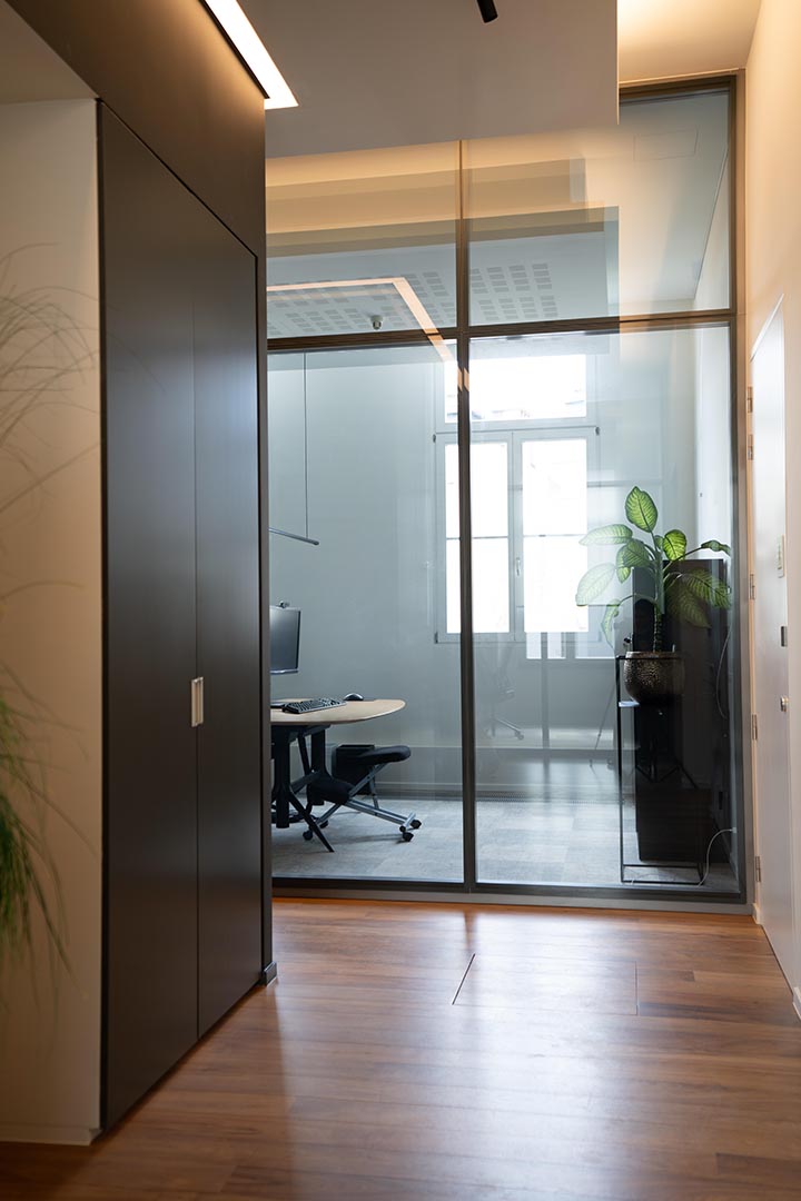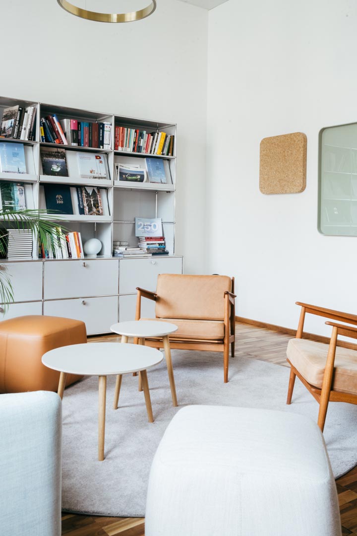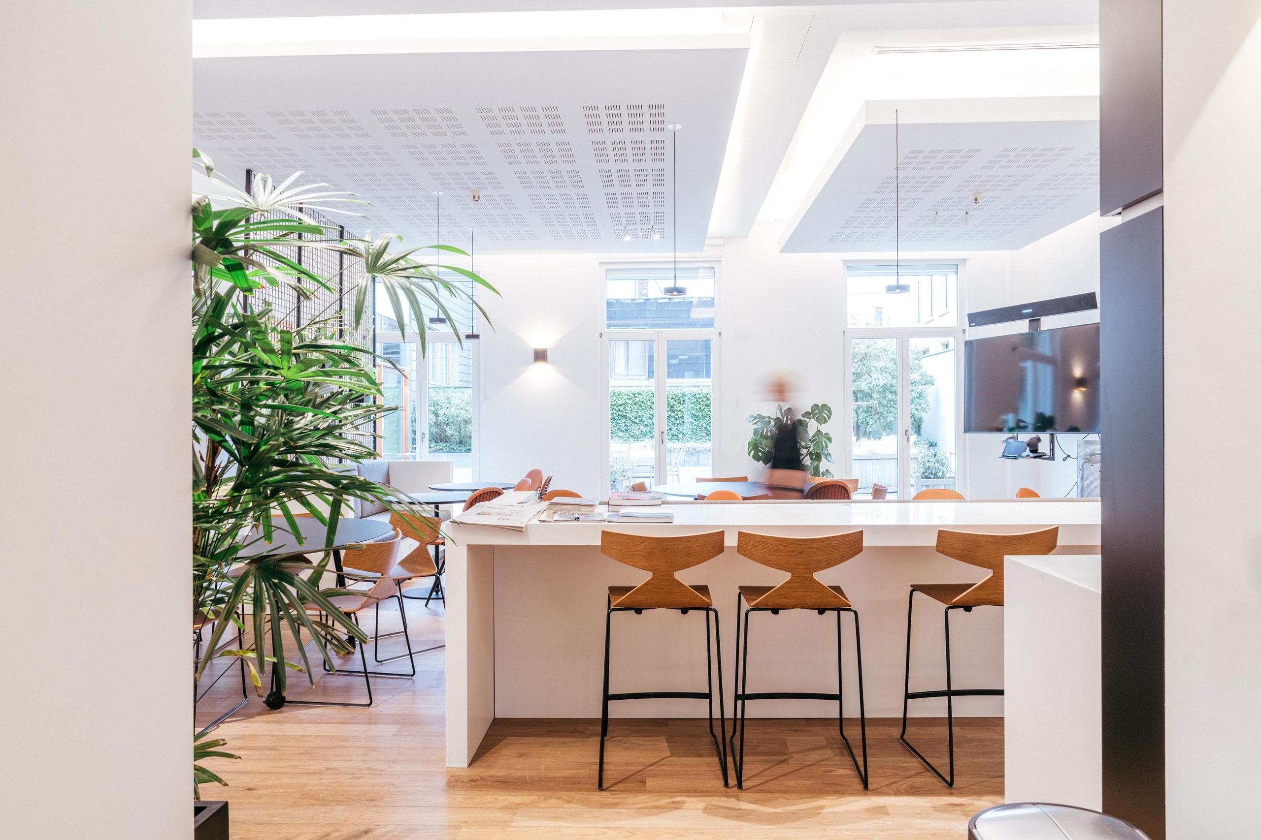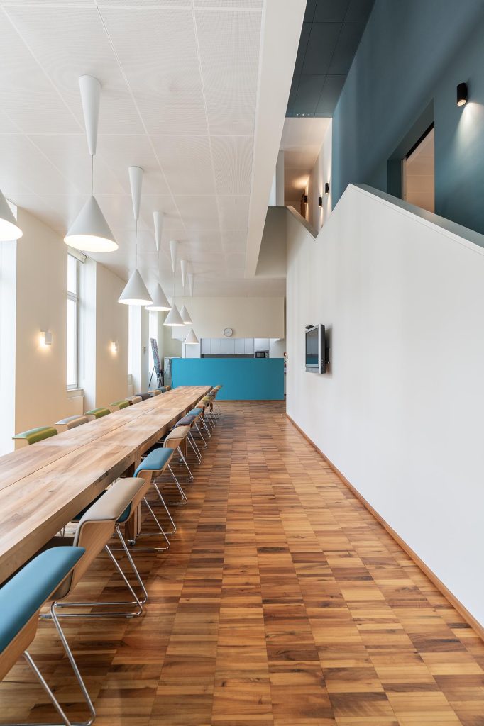 Strakke lijnen en warme tinten zorgen voor een uitnodigende sfeer, terwijl de tijdloze elegantie van het meubilair de ruimtes een professionele uitstraling geeft. Elk detail draagt bij aan een omgeving waarin medewerkers zich kunnen concentreren, samenwerken en inspireren, van co-working zones tot informele vergaderplekken.