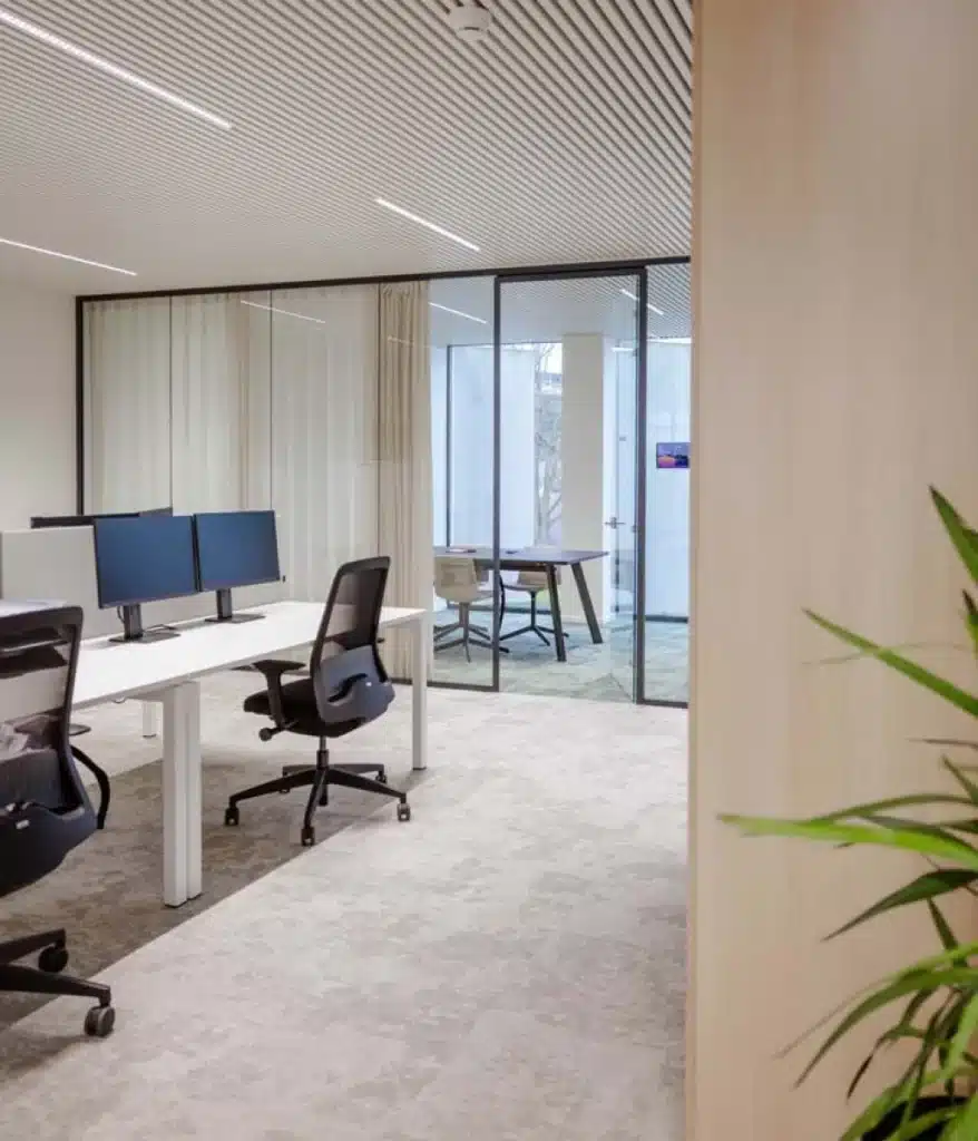 Wij helpen je graag om jouw ideale werkplek te creëren. Of het nu gaat om een enkele ruimte of een volledige inrichting – ons team staat voor je klaar met advies, ontwerp en uitvoering op maat.