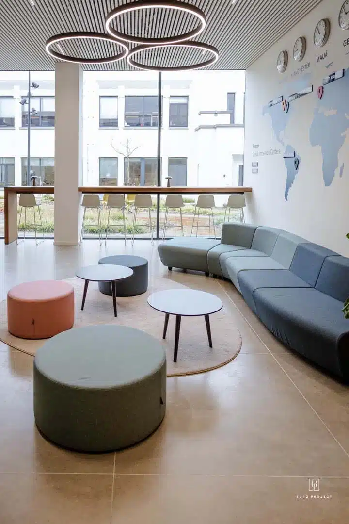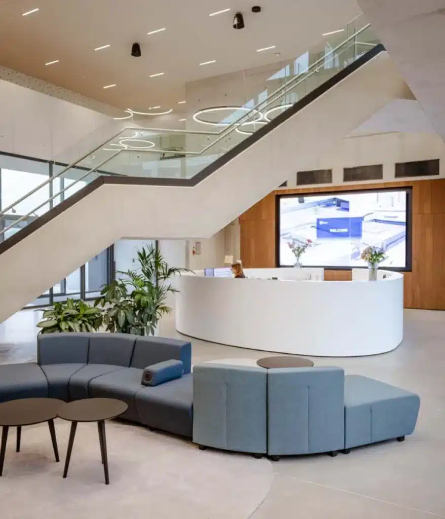 Na lange tijd op afstand werken, wilde Amcor opnieuw een plek creëren waar mensen zich echt verbonden voelen. Een warme, inspirerende omgeving waar klanten én collega’s zich meteen thuis voelen. Samen vertaalden we die ambitie naar een totaalinrichting die zowel medewerkers als klanten weet te verrassen. Van een indrukwekkend experience center tot gezellige koffiehoeken en flexibele vergaderruimtes: dit kantoor combineert functionaliteit met een huiselijke sfeer, en maakt van elke werkdag een beleving.