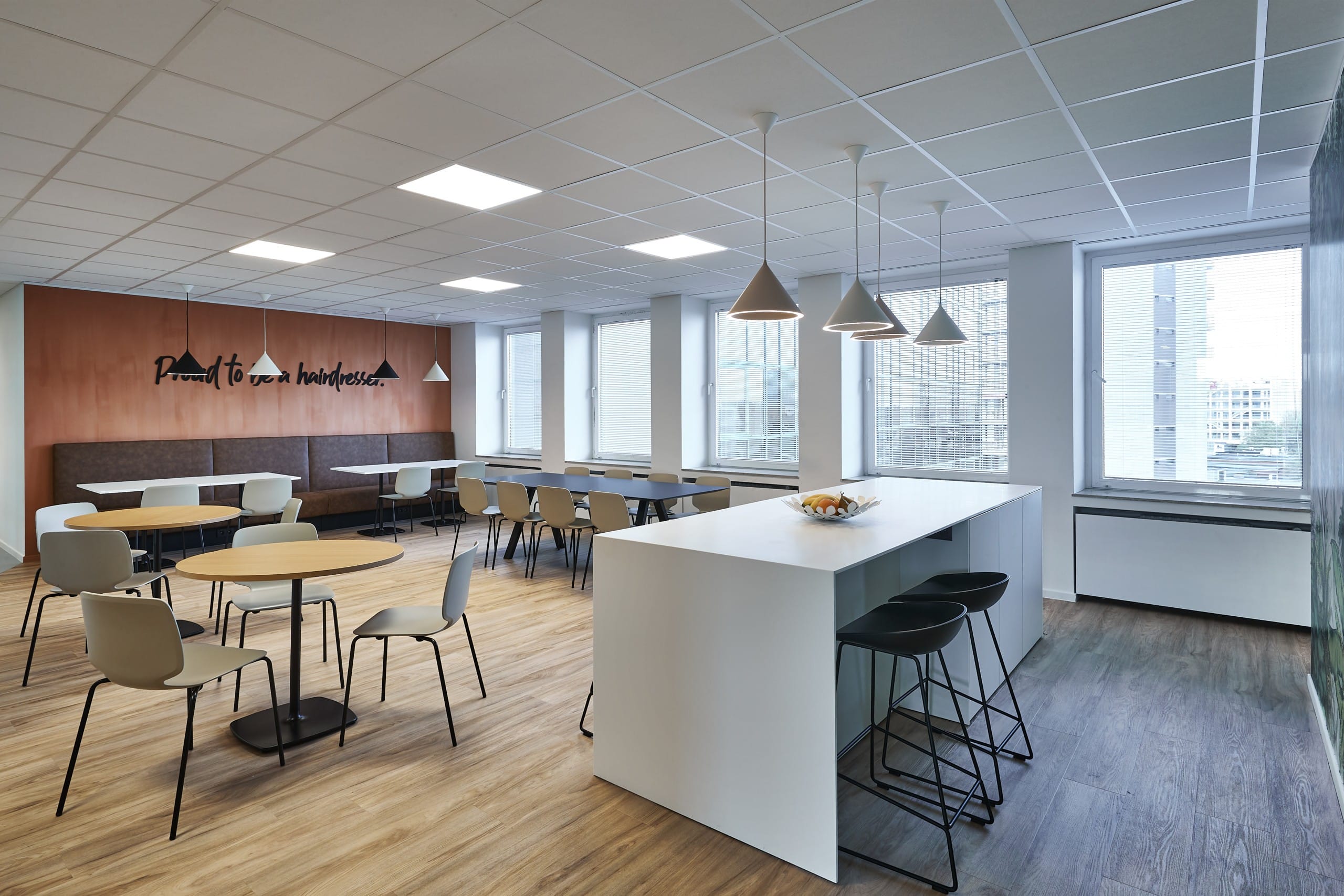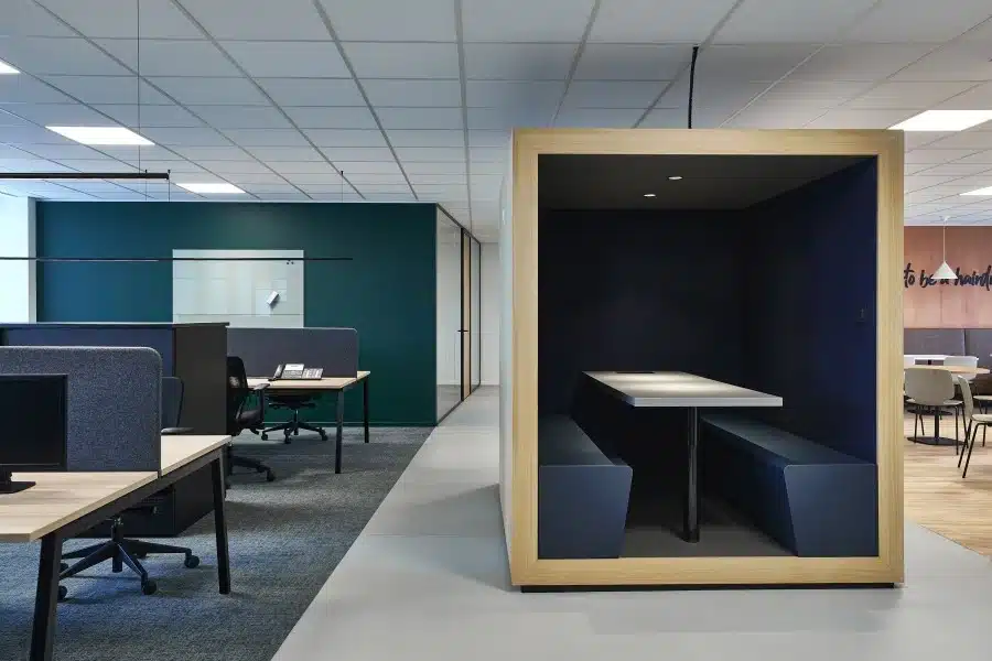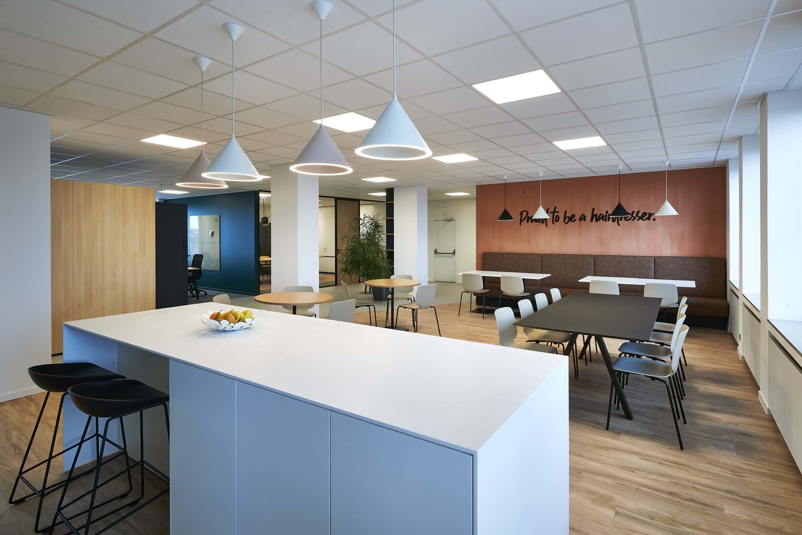 Van een gedateerd canvas naar een ruimte op maat. Coiffure verhuisde naar een ruim plateau in een hoog kantoorgebouw. Om ervoor te zorgen dat er een match was tussen het interieur van dit nieuwe kantoor en het dynamische karakter van de organisatie, werd de hele ruimte aanzienlijk opgefrist. Om het plaatstekort op te lossen, voorzagen we multifunctionele zones die naadloos in elkaar overlopen. De verdieping is een ruime mix van confidentiële en afgesloten kantoren, open space, flexwerkplekken, vergaderzaal, overlegplekken, cafetaria en een lounge zone.