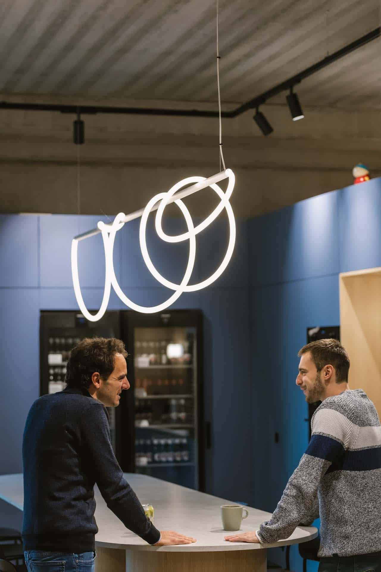 Bij Cronos aan de Leie draait alles om innovatie, ondernemerschap en digitale transformatie. Ook hun kantooromgeving onderging een indrukwekkende transformatie: van een eenvoudige loods naar een moderne, dynamische werkplek waar technologie, creativiteit en ondernemerschap samenkomen. Een kantooromgeving die niet alleen functioneel is, maar ook inspireert, verbindt en ondersteunt.