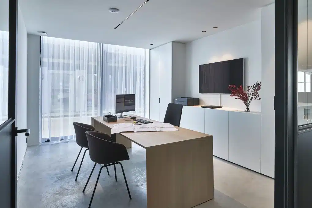 Wij helpen je graag om jouw ideale werkplek te creëren. Of het nu gaat om een enkele ruimte of een volledige inrichting – ons team staat voor je klaar met advies, ontwerp en uitvoering op maat.