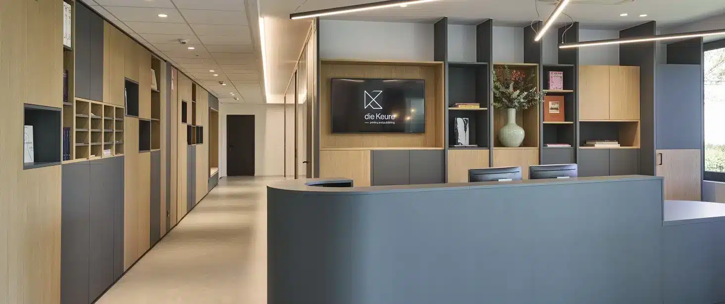 Onze samenwerking met Die Keure heeft geleid tot een kantooromgeving die niet alleen functioneel en stijlvol is, maar ook de kernwaarden en toekomstvisie van de uitgeverij weerspiegelt. We zijn trots op het resultaat en kijken uit naar toekomstige projecten waarin we opnieuw onze creatieve en technische expertise kunnen inzetten.