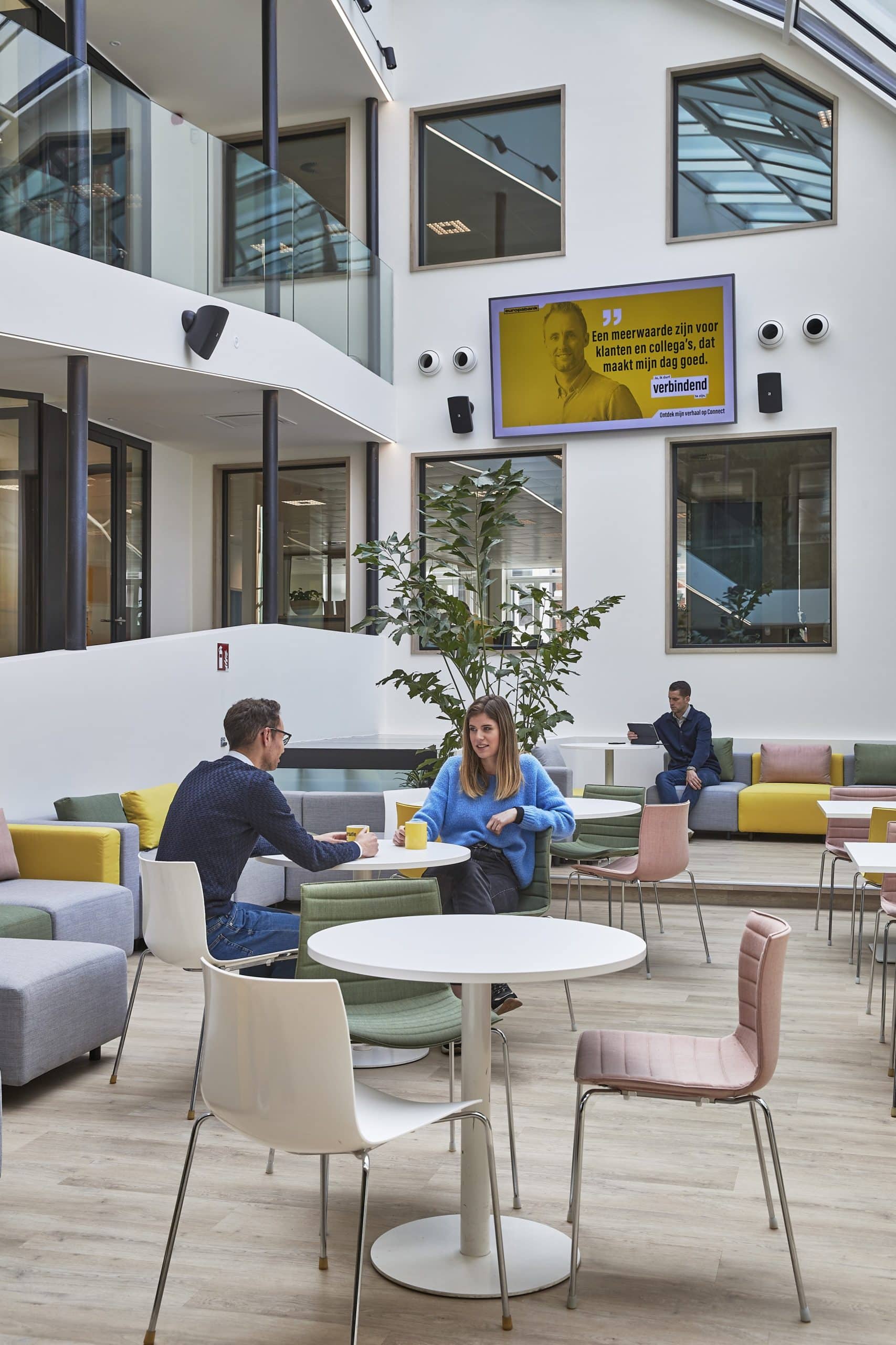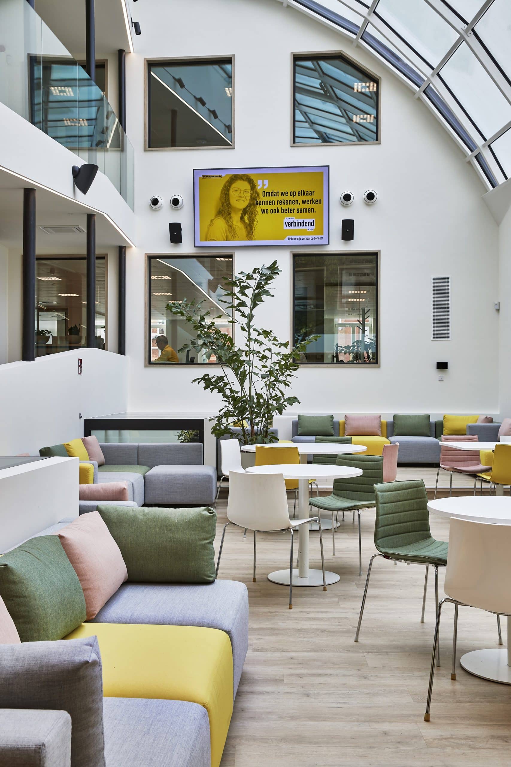 Het resultaat is een werkomgeving die niet alleen cijfers en strategie ondersteunt, maar ook het welzijn van iedereen die er werkt. Licht, groen en tactiele materialen maken het kantoor warm en toegankelijk. Elk detail, van de gele accenten tot de afgeronde vormen, draagt bij aan een plek waar je graag binnenstapt en nog liever blijft.