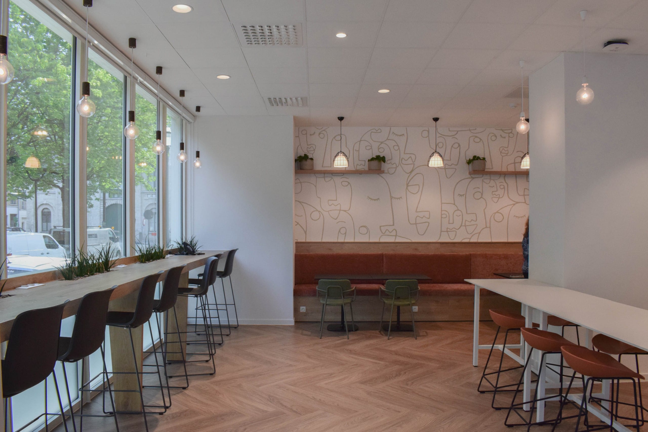 Met die inbreng begon ze “te puzzelen tot het klopte”. En het resultaat mag er zijn. “Met een open landschapskantoor, multifunctionele plekken en aparte bubbels creëerden we een ruimte die interactie stimuleert en het teamgevoel versterkt. Tegelijk is het perfect mogelijk om je te focussen of afgezonderd te werken”, vertelt ze. “De aankleding is kleurrijk, huiselijk en warm. Ik wilde de medewerkers het gevoel geven dat ze thuiskomen op kantoor.”