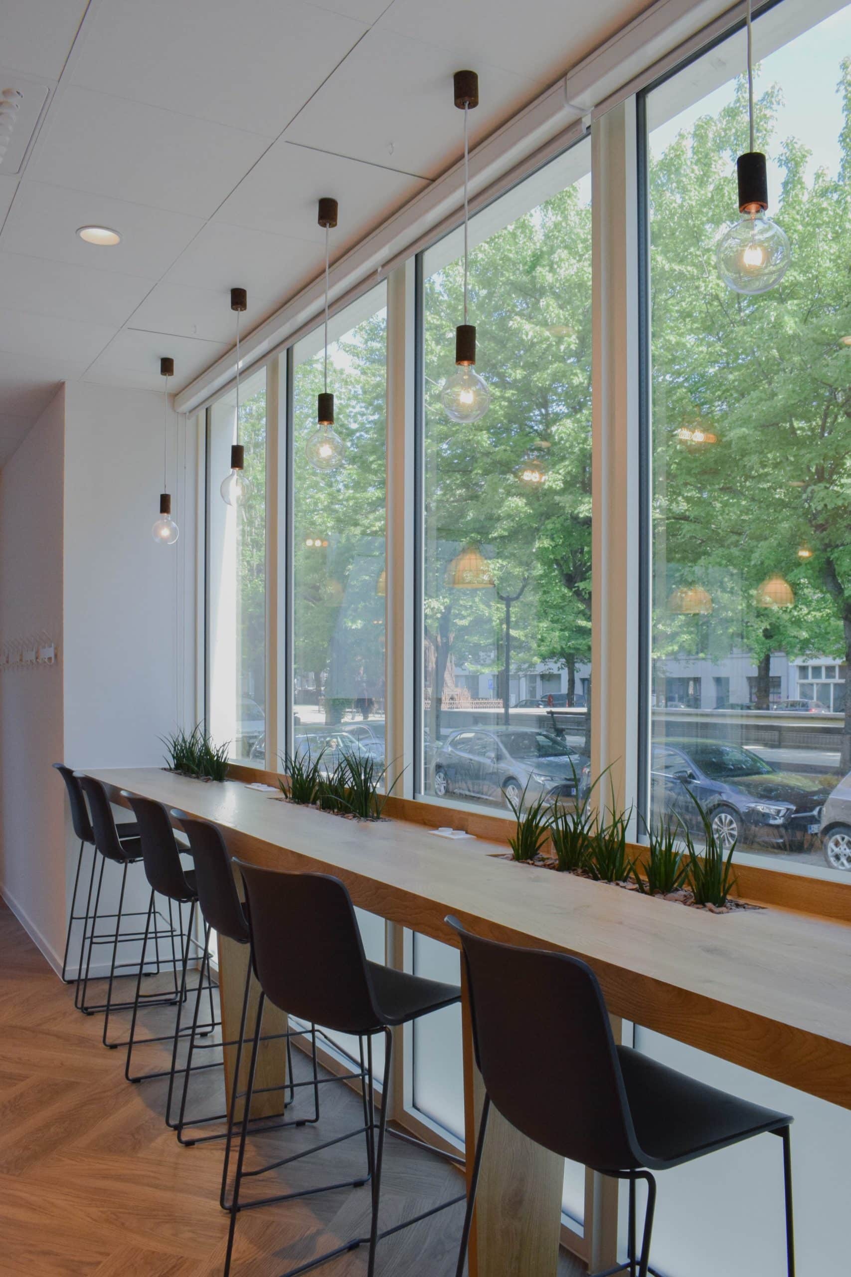 Natascha haalde alles wat ze kon uit de vierkante meters. Zo kan het werkcafé buiten de lunchuren ook omgetoverd worden tot aparte ruimtes. “Dat werkt fantastisch! Van ‘s ochtends tot ‘s avonds zijn er zowel meetings als babbels tussen collega’s, met bezoekers en leveranciers”, vertelt Fons. “Collega’s die elkaar vroeger amper zagen, treffen elkaar nu in het werkcafé.” En hoewel er veel kantooreilanden zijn in het open landschap, hebben ze elk hun eigenheid. Natascha: “Door te spelen met hoge en lage kastenformaties tussen de eilanden, krijgen deze een uniek karakter zonder dat je de ruimte in hokjes opdeelt.”