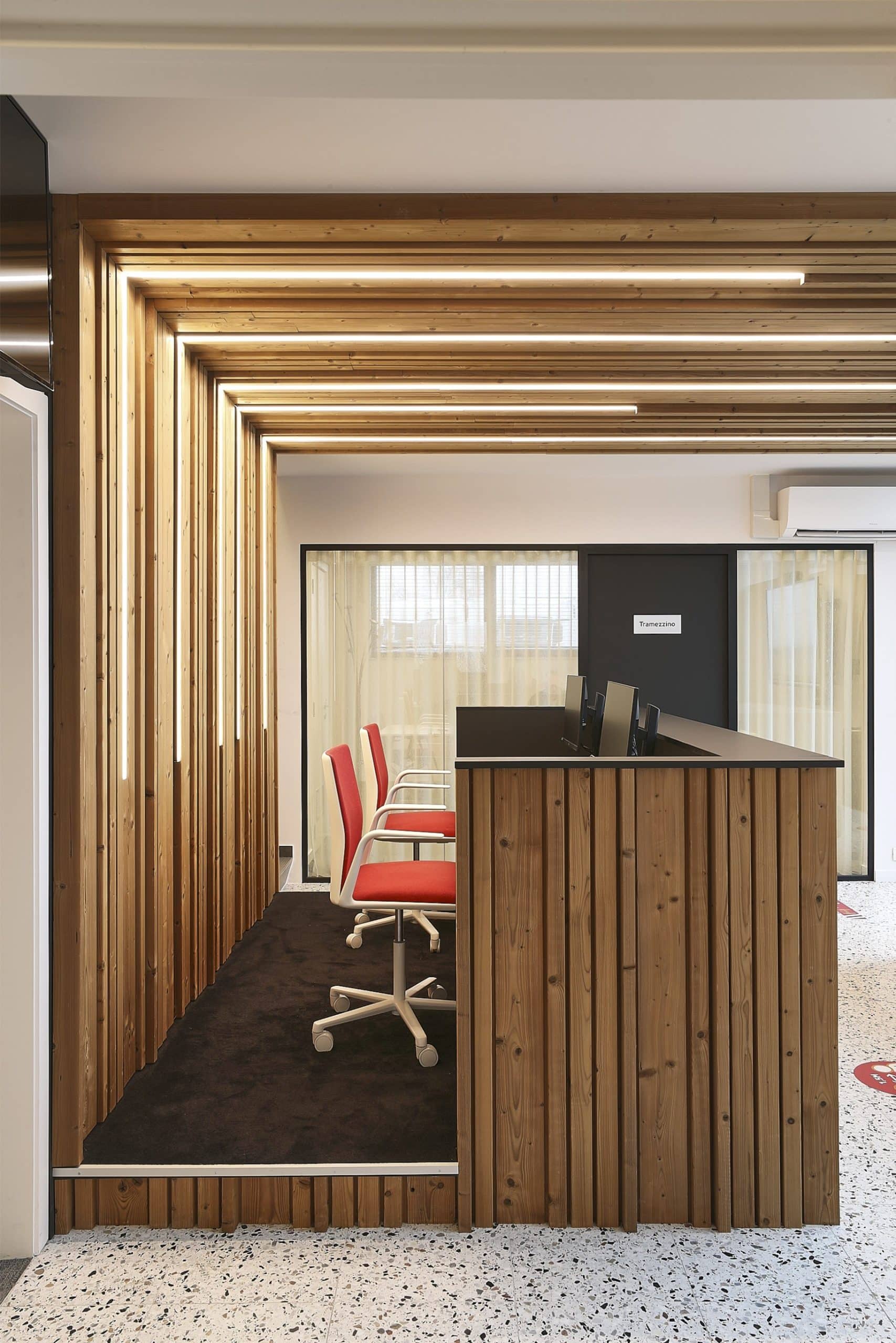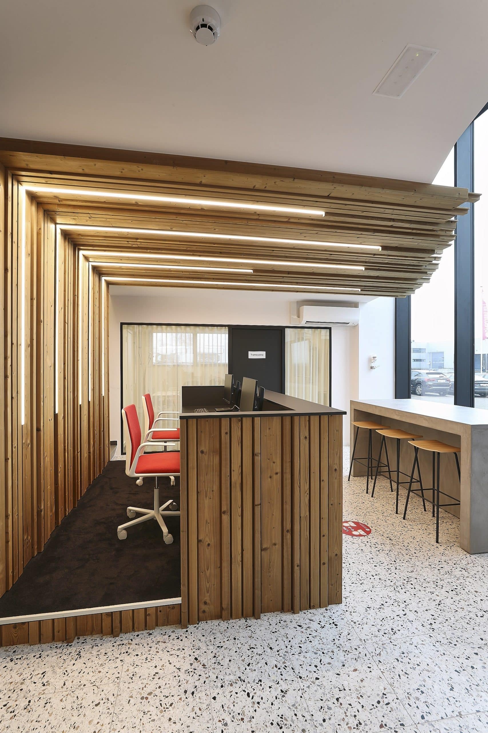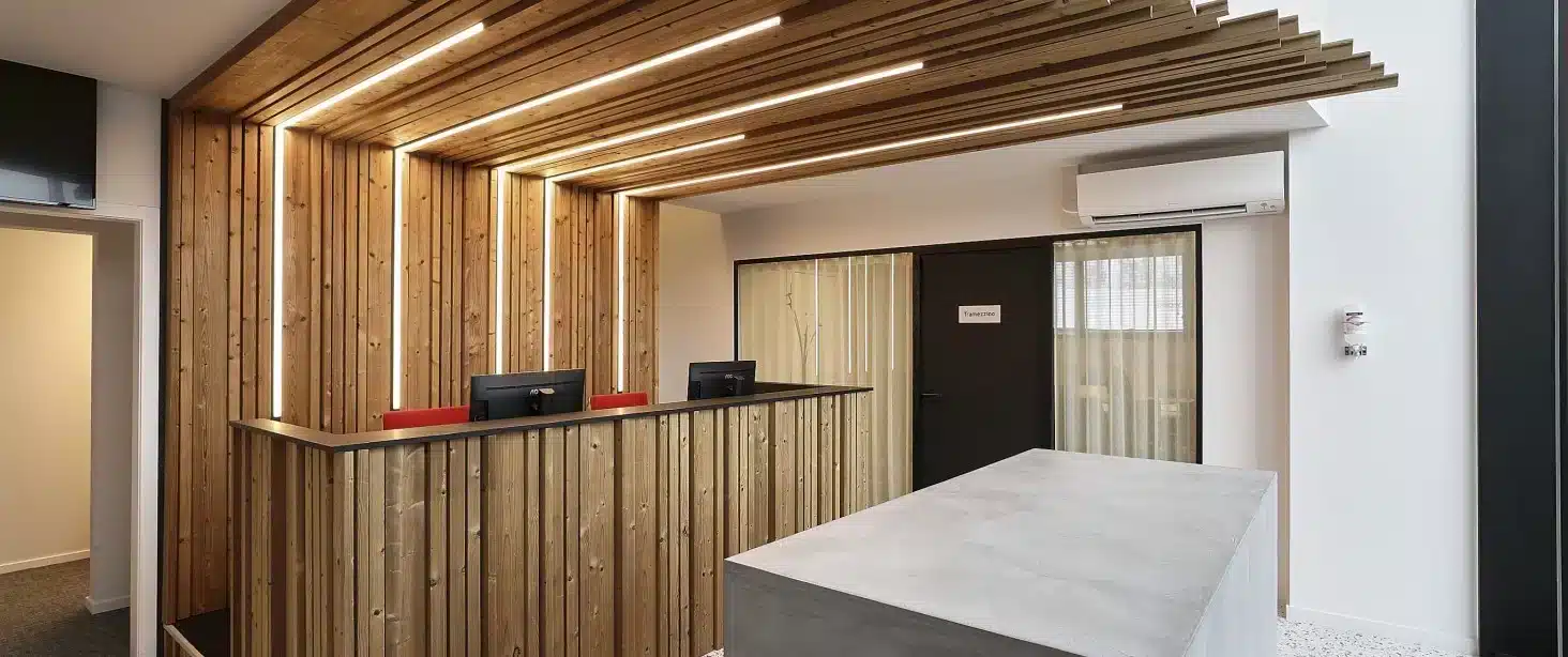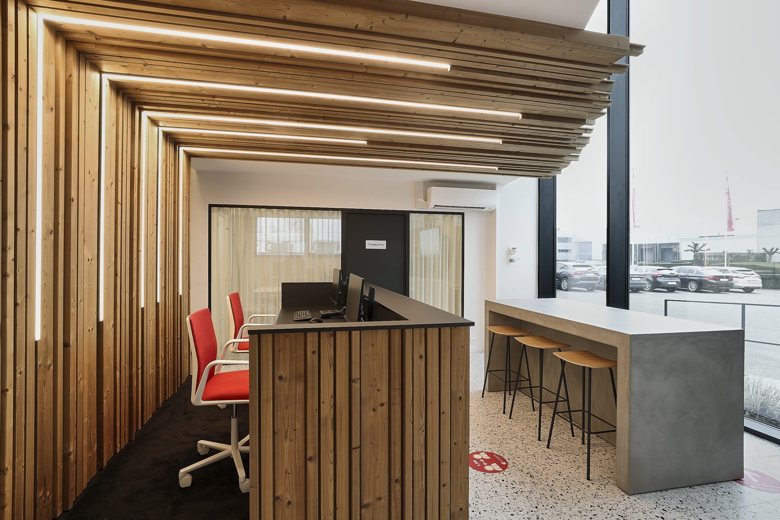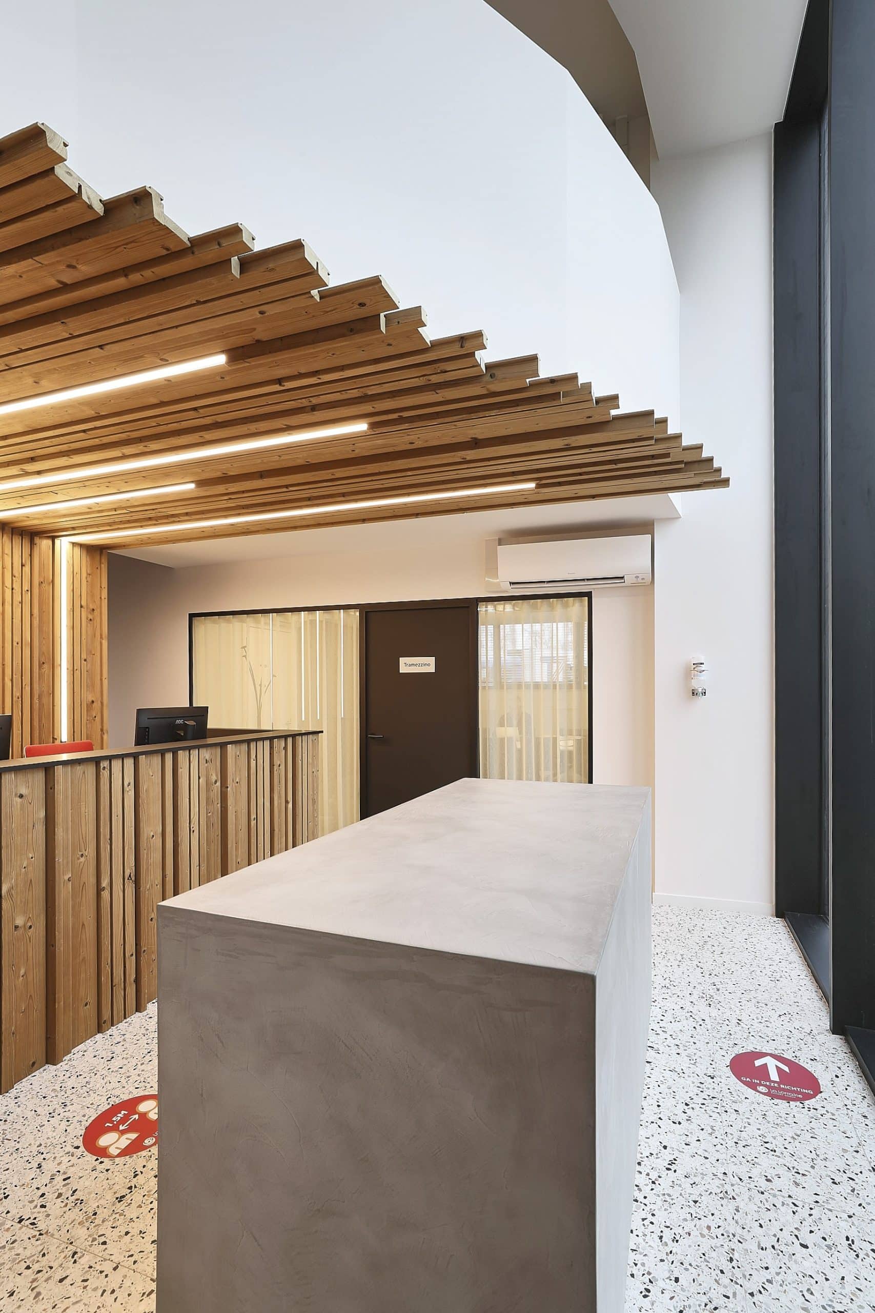 La Lorraine, het Belgische familiebedrijf dat reeds 80 jaar een stevige passie voor bakken heeft, besloot om haar DNA door te trekken in haar hoofdzetel in Erpe-Mere. Zo besloten ze de huidige entree en de kantoorruimtes om te toveren tot een authentiek geheel waar hun gepassioneerde werknemers met plezier naar toe komen. Voor de receptie, die ook dienst moet doen als wacht- en werkruimte, wensten ze natuurlijke kleuren en materialen die de ambachtelijke sfeer van het brood bakken accentueren.