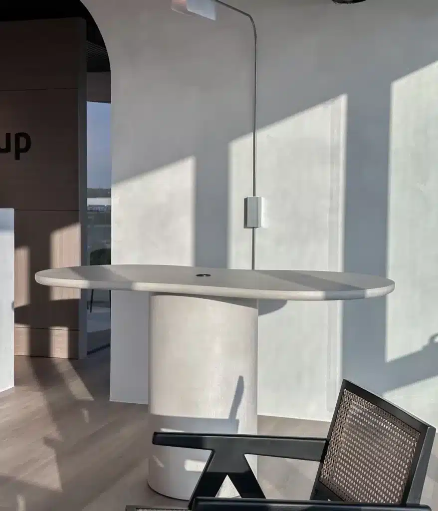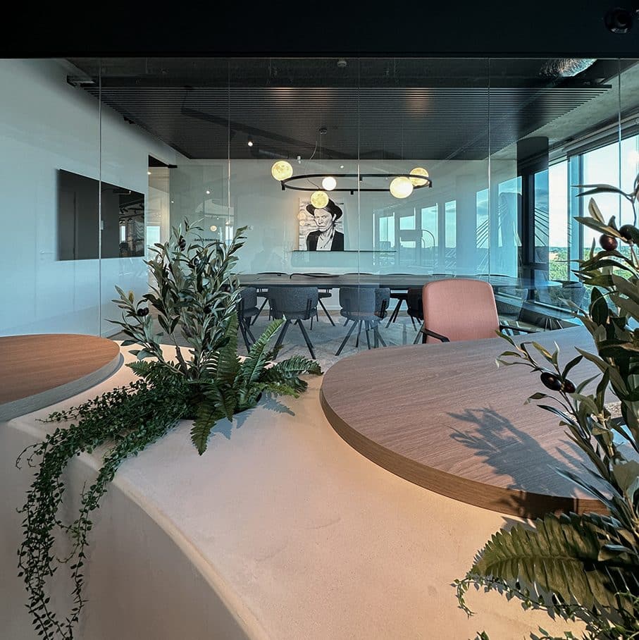 Samen met interieurarchitect Anthony Boelaert creëerden we een ruimte waarin huiselijkheid en professionaliteit perfect samengaan. Met meubelen die niet alleen praktisch zijn, maar ook het gevoel van rust en klasse versterken. We kozen voor hoogwaardige, natuurlijke materialen zoals warm hout en mortex, die de werkomgeving tot leven brengen. Het resultaat? Een werkplek die niet alleen functioneel is, maar ook een echte beleving biedt voor de medewerkers van Planet Group.