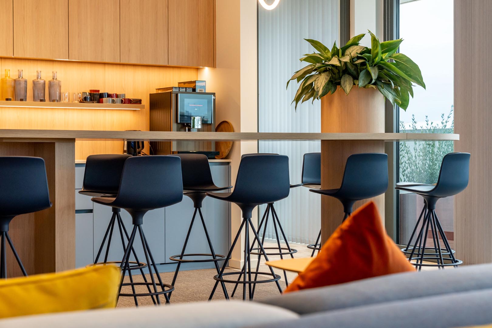 Het ontwerp van LMS Architecten gaf een duidelijke richting en samen hebben we dat verder aangescherpt zodat de ruimtes prettig aanvoelen in gebruik. Met de juiste kleuren, materialen en het meubilair dat alles laat kloppen, sluit het geheel mooi op elkaar aan en voelen de ruimtes rustig en natuurlijk aan wanneer je erdoor beweegt.