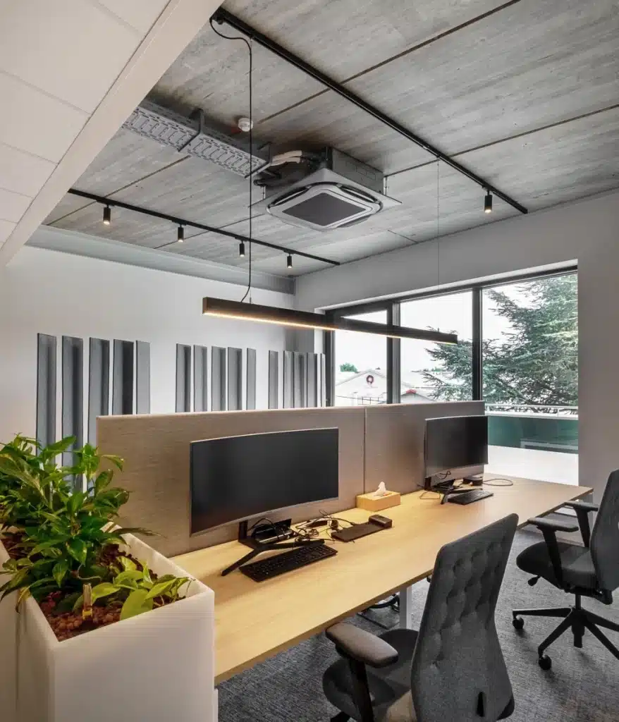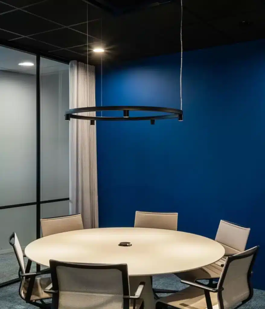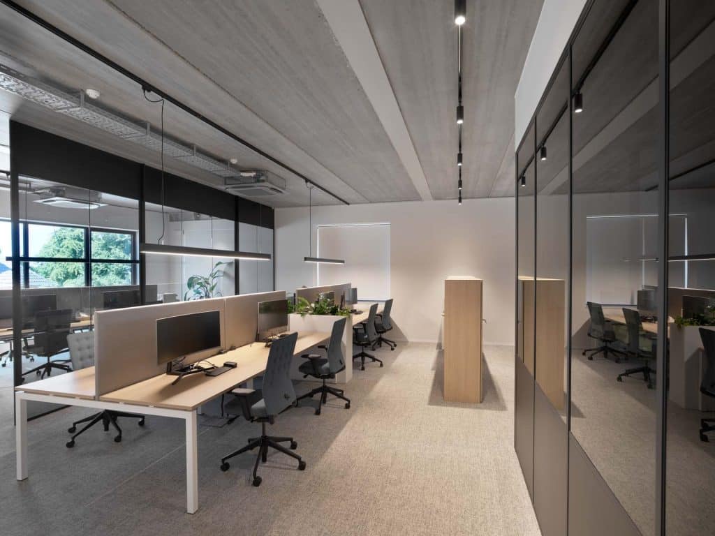 Wij helpen je graag om jouw ideale werkplek te creëren. Of het nu gaat om een enkele ruimte of een volledige inrichting – ons team staat voor je klaar met advies, ontwerp en uitvoering op maat.