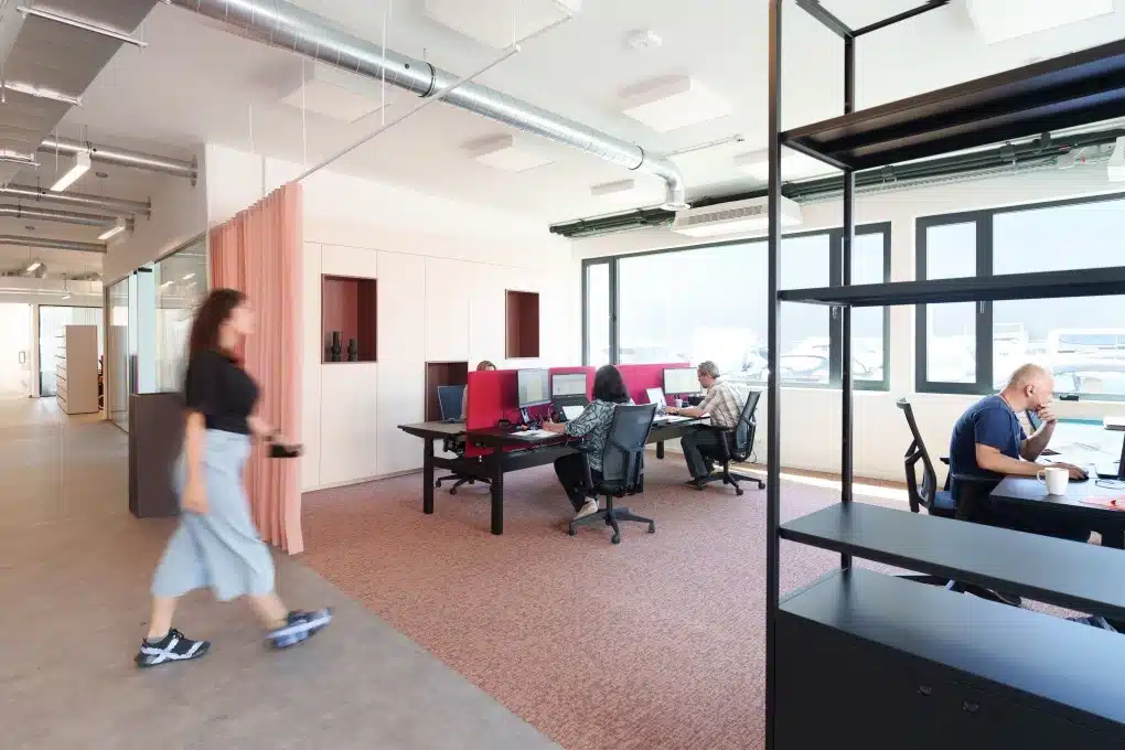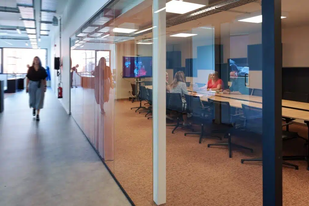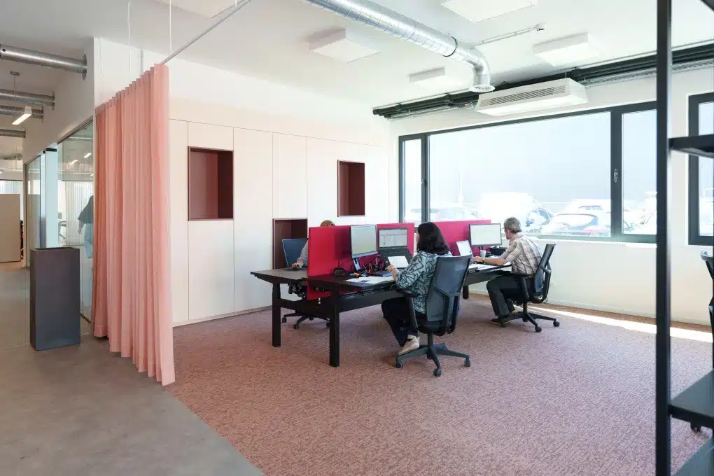 De overgang naar flexdesks verliep vlot. “Iedereen kiest nu een plek op basis van welk soort werk er die dag op de plank ligt. Zo is er een noisy corner voor sales calls en een silent corner waar de collega’s van facturatie vaak zitten”, vertelt Lenny Goossens, Talent & Project Manager bij SomatiFIE. “Die keuzemogelijkheid brengt ons heel veel rust en concentratie.”