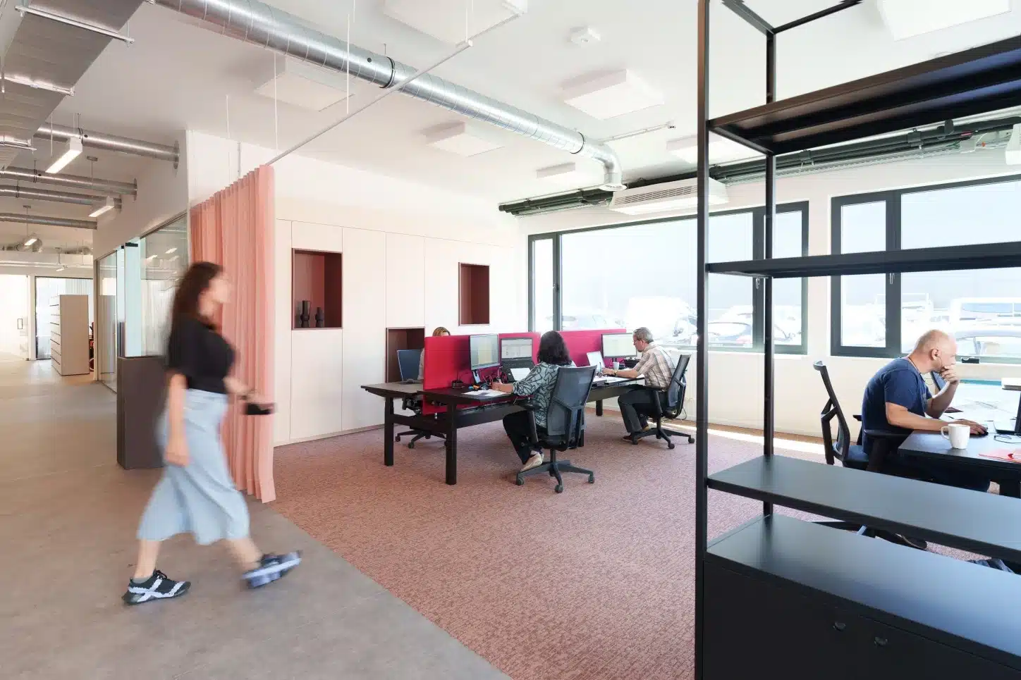 Lenny is ook tevreden met de vertaling van de huisstijl. “De huisstijlkleuren zijn op een leuke en herkenbare manier doorgetrokken in het ontwerp. Zo zijn de flexbureaus zwart met rode tussenwanden en komt het rood ook terug in de tapijten en gordijnen. De mooie gele en rode kasten zorgen voor een opvallend accent in de ruimtes.”