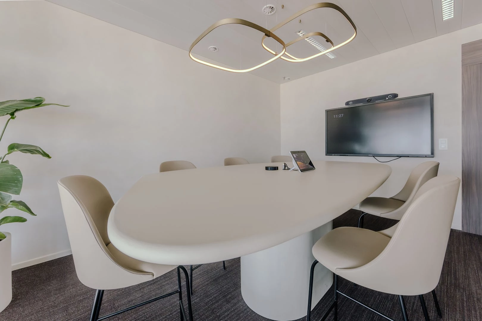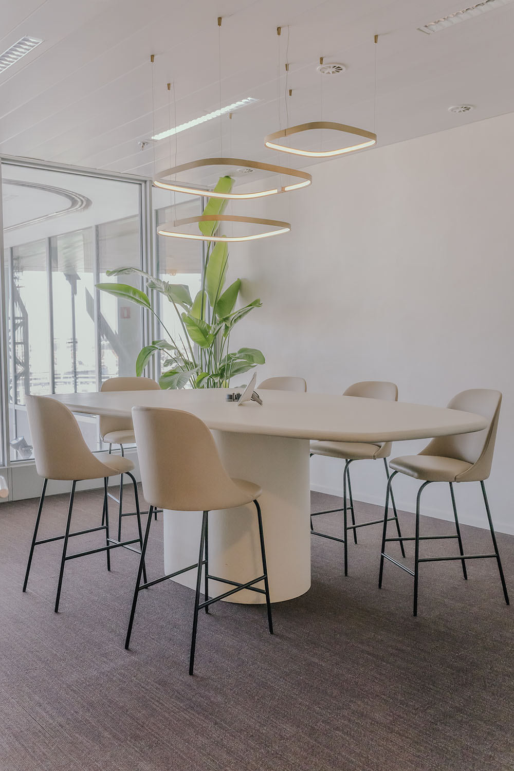 Van de maatwerk vergadertafel met geïntegreerde schermen tot de staande vergaderruimte in mortex: elk element werd met zorg geplaatst en afgewerkt. De feedback? Overweldigend positief. En binnenkort zetten we het verhaal verder, met de inrichting van de inkomzone.