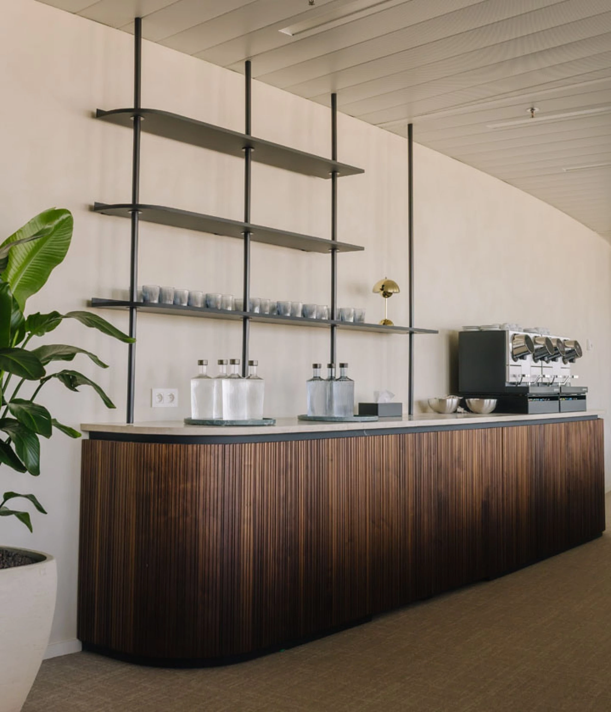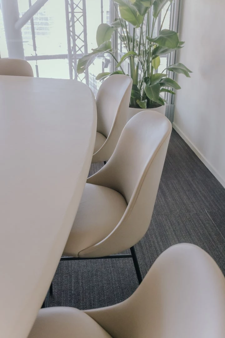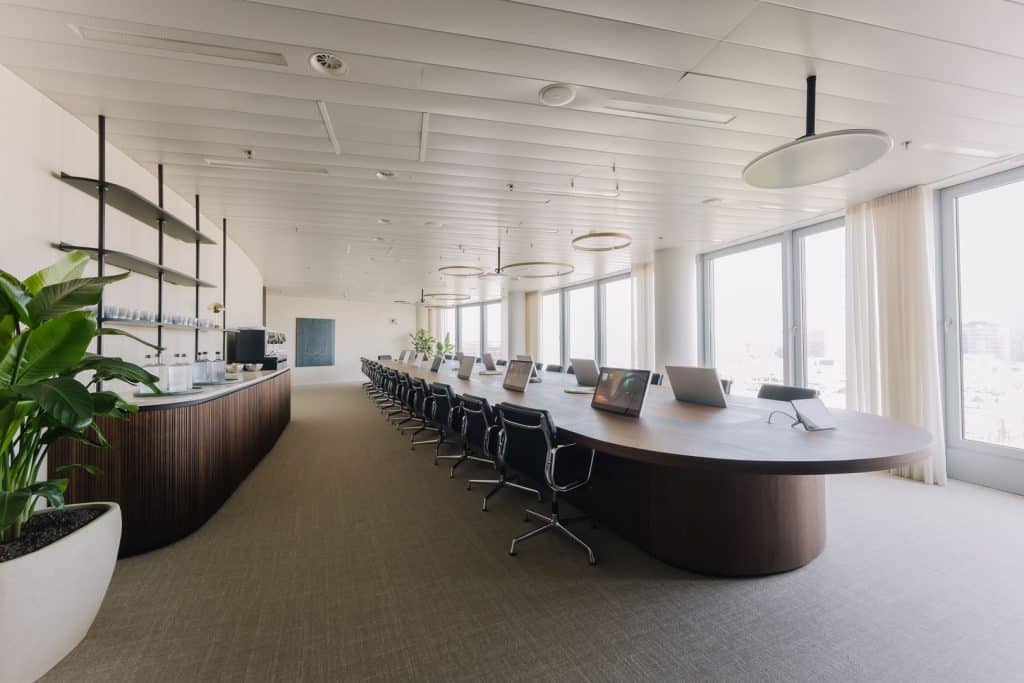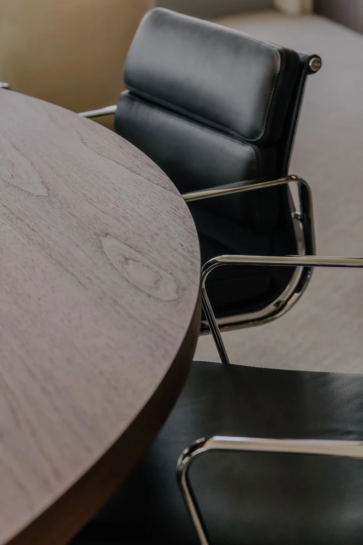 Voor Stibbe is het cruciaal dat hun vergaderruimtes meer zijn dan enkel formele overlegplekken. Ze willen ruimtes waarin medewerkers en cliënten zich op hun gemak voelen. Wij vertaalden die wens naar een huiselijke kantoorinrichting met warme materialen, zachte kleuren en een verfijnde afwerking. Denk aan tafels in walnootfineer, sfeervolle verlichting in chroom, stijlvolle accessoires en natuurlijke accenten zoals planten.
