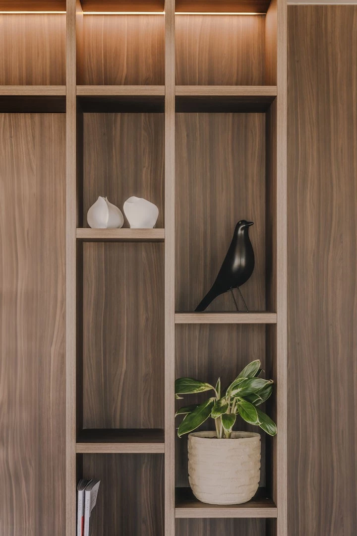 Voor de look & feel kozen we voor warme materialen, zachte kleuren en natuurlijke accenten. Met moodboards stemden we stijl en sfeer nauwkeurig af: walnootfineer, lichte mortex, chrome verlichting en zorgvuldig gekozen accessoires zorgen vandaag voor een interieur dat rust én verfijning uitstraalt.