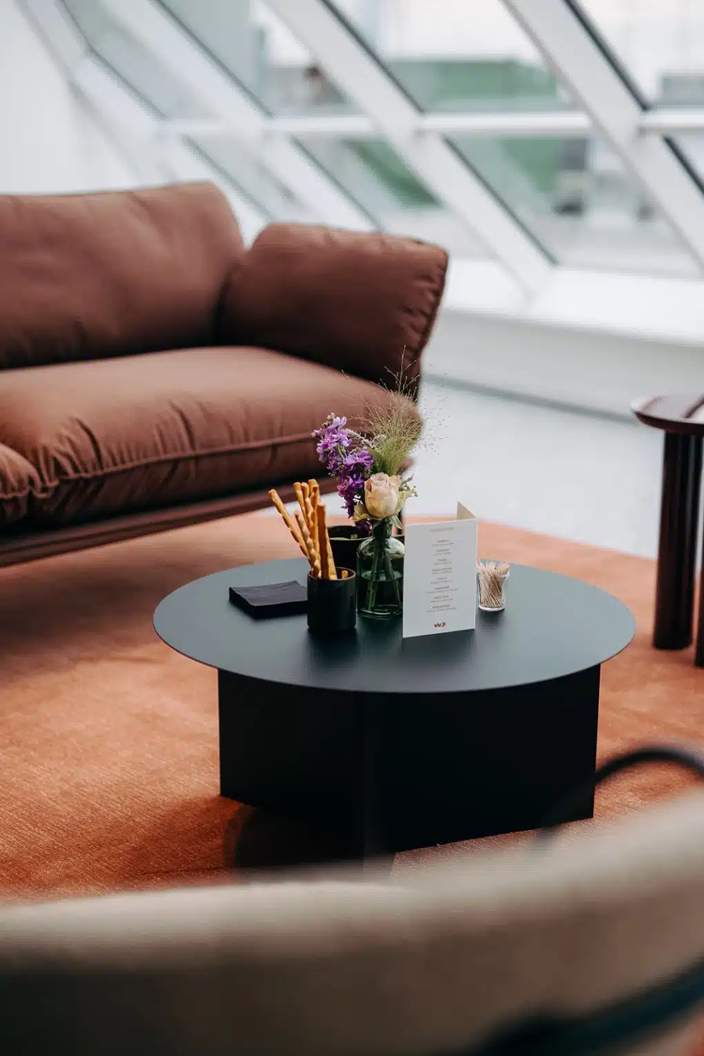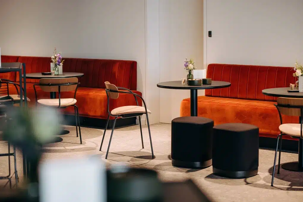 De basis voor dit project lag bij de strakke, afgeronde architectuur van Wilma Wastiau Architecten. Onze rol? Die vormentaal vertalen naar een even coherent interieurconcept. Van zachte stoffen tot metalen accenten, van hospitality-invloeden tot huiselijke zithoeken: alles werd afgestemd op de look & feel die het gebouw zelf al ademde.