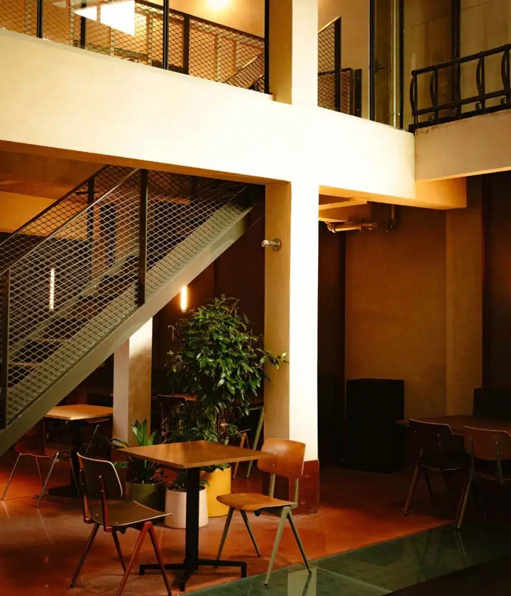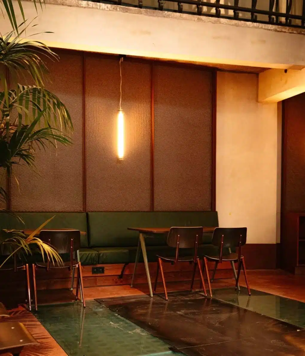 Bar Bougie, de gezellige bar op het gelijkvloers, vroeg om een inrichting die zowel het historische karakter van het gebouw als het hedendaagse comfort weerspiegelt.