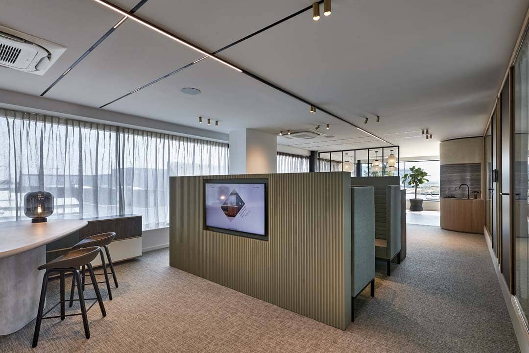 Glazen wanden en open ruimtes creëren visuele rust en een gevoel van verbondenheid. Geen “hokjesmentaliteit” (letterlijk), maar een transparante werkcultuur. Zorg wel voor akoestische oplossingen, zodat de ruimte rust uitstraalt én functioneel blijft.